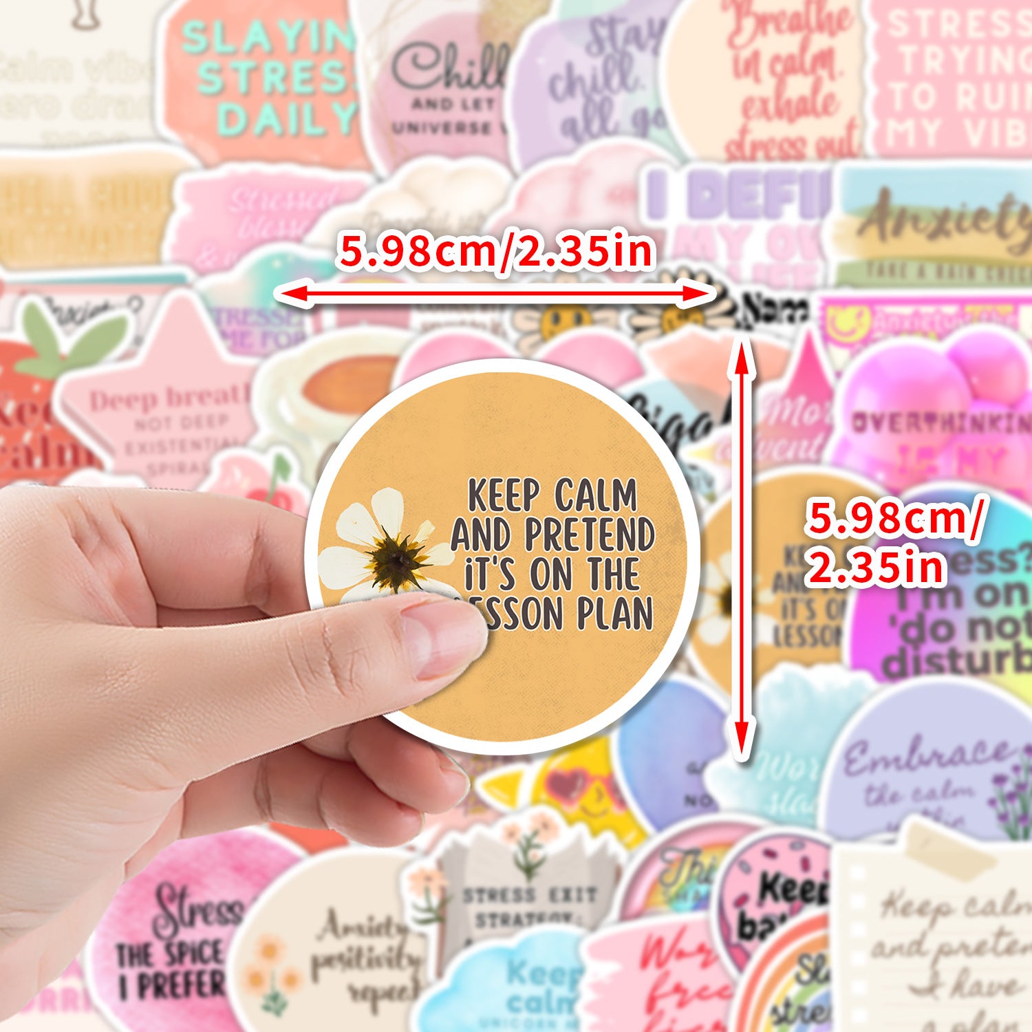 • 50 unique Boho-style mental health stickers