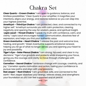 💜 Amethyst (Crown Chakra): Promotes peace, clarity, and spiritual protection.